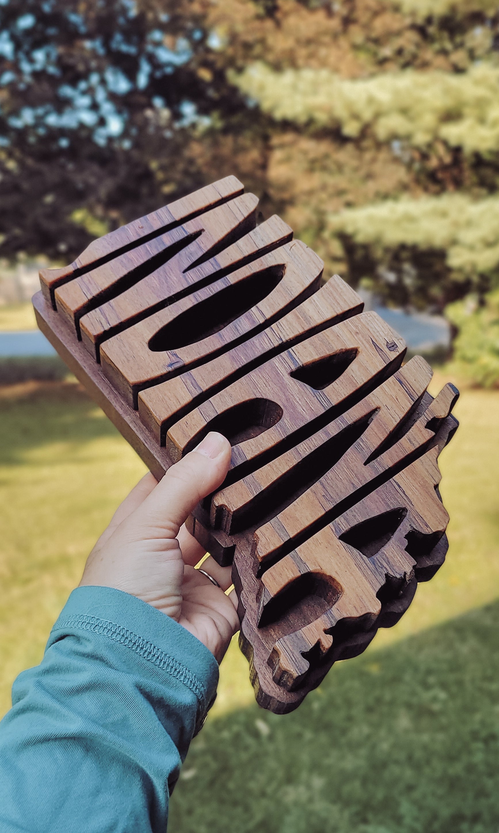 Using salvaged Indiana walnut or maple, this sign is sure to be a great gift for any Hoosier.
