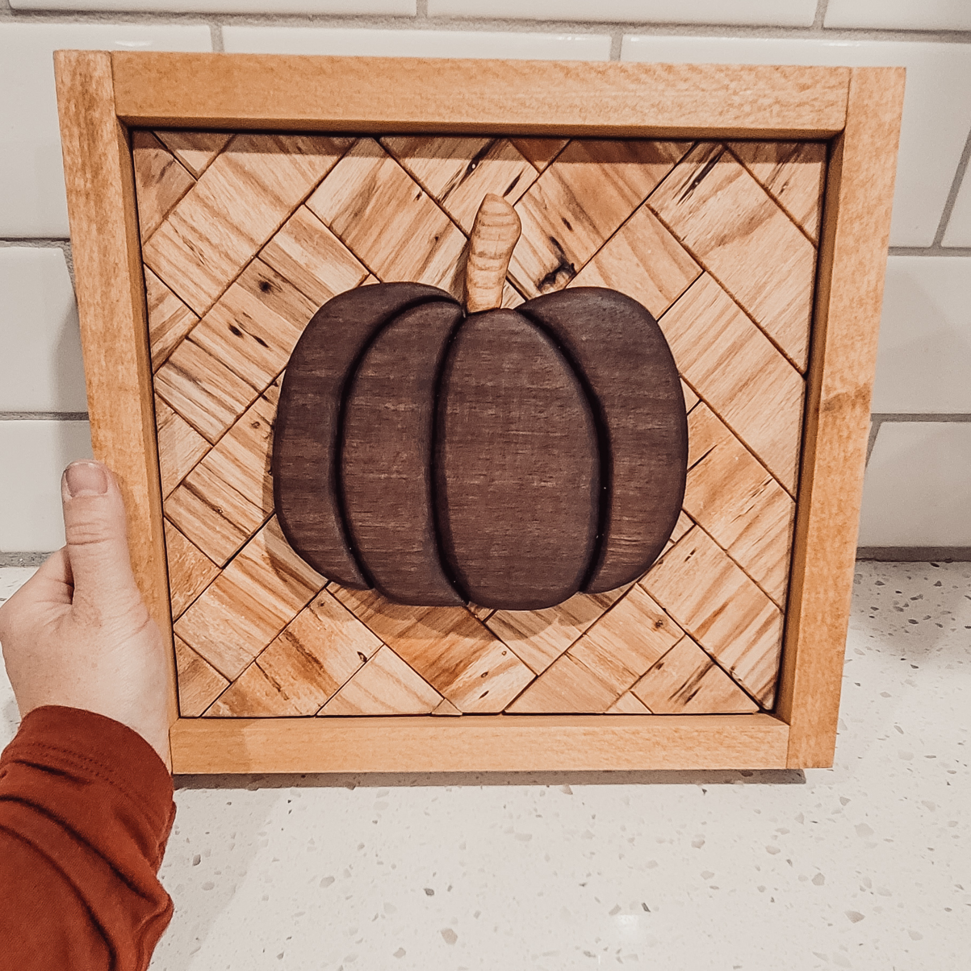 Using salvaged Indiana walnut, this pumpkin is the cutest addition to your Fall or Halloween decor. The backer is salvaged Indiana maple and sealed with food safe, vegan Walrus Oil, to bring out the natural beauty of the wood.