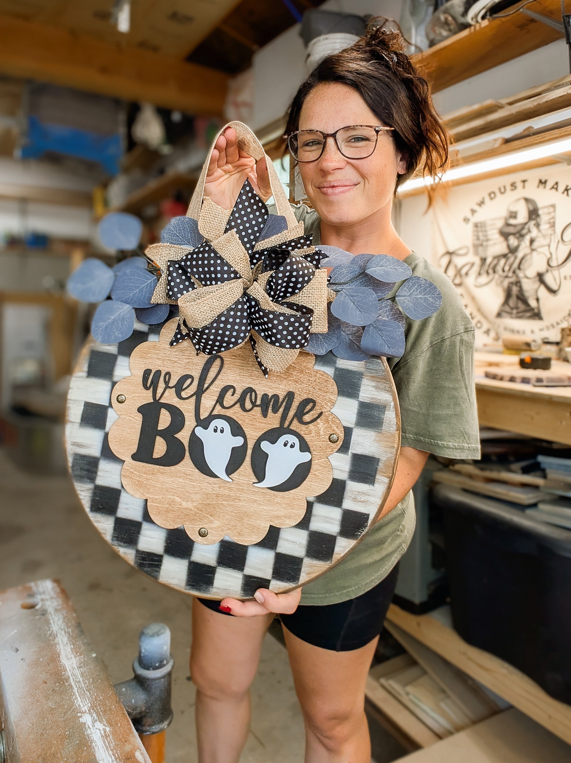 Details: 15" distressed, sealed, with hanger installed, decor will be exactly what is shown or very similar depending on what is available.