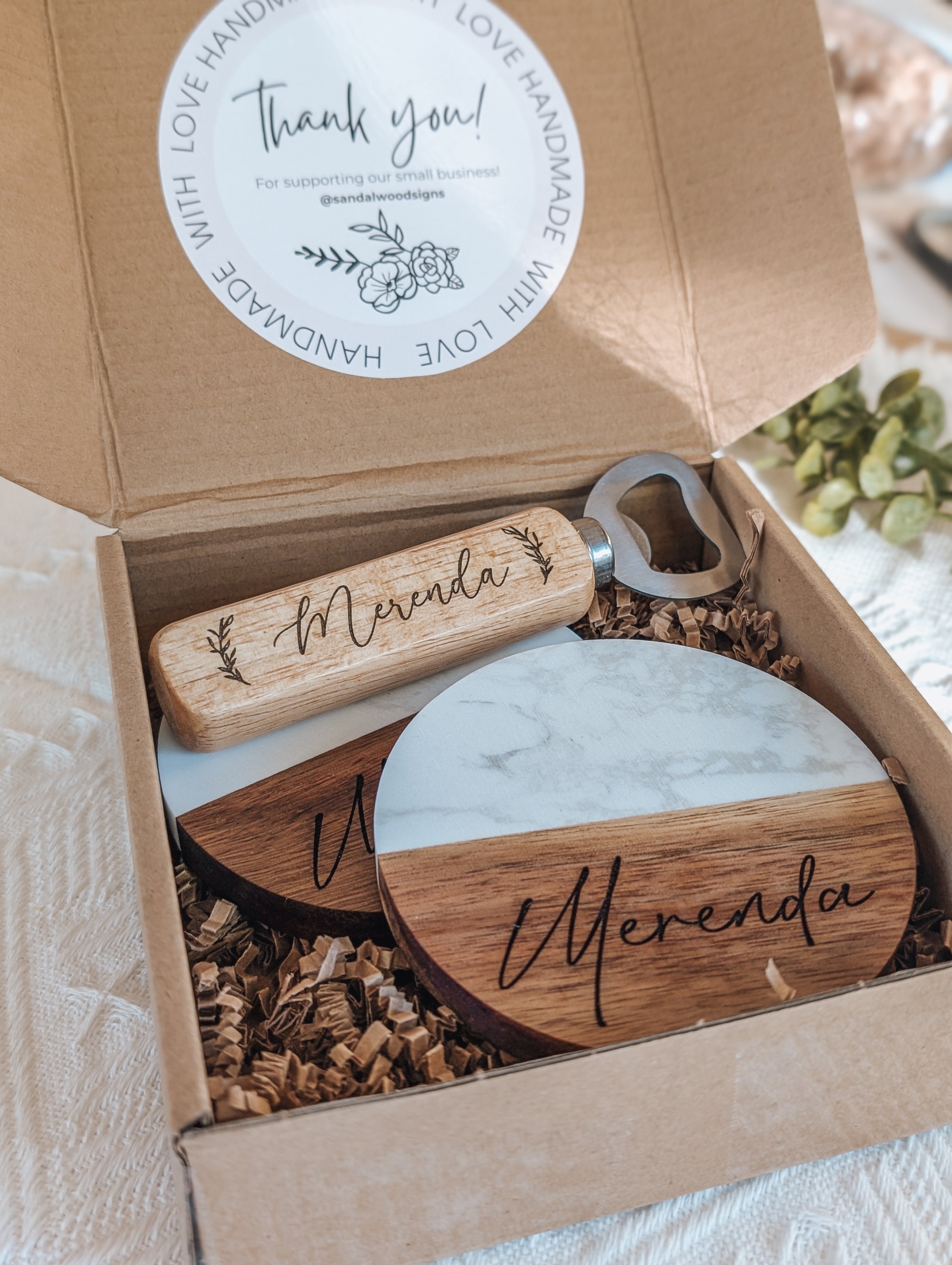 Personalized Wood Acacia Coaster with Bottle Opener Bundle